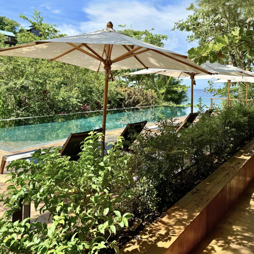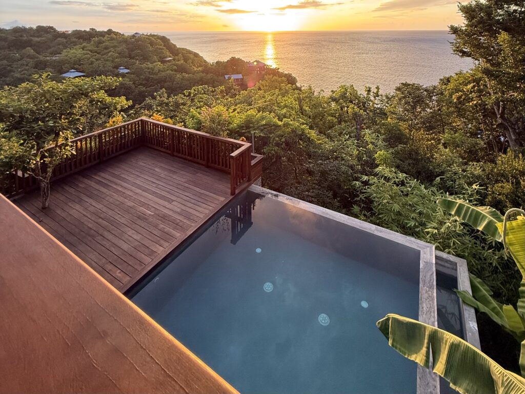 We stayed in the remarkable Clifftop Zabuco Honeymoon Villa II. The villa had a private plunge pool with an expansive deck and stunning views. It featured an outdoor shower for those refreshing moments in nature and a shaded hammock sofa suspended beneath the villa. This spot was ideal to sway and soak up the surroundings. With a vast open terrace and lounge areas, this was the ultimate place to savor morning coffee. It was also perfect for enjoying sunset cocktails and private swims under the stars. Fun fact! We learned the local term “Zabuco” means “apricot,” a fitting name for a villa rooted in natural beauty.